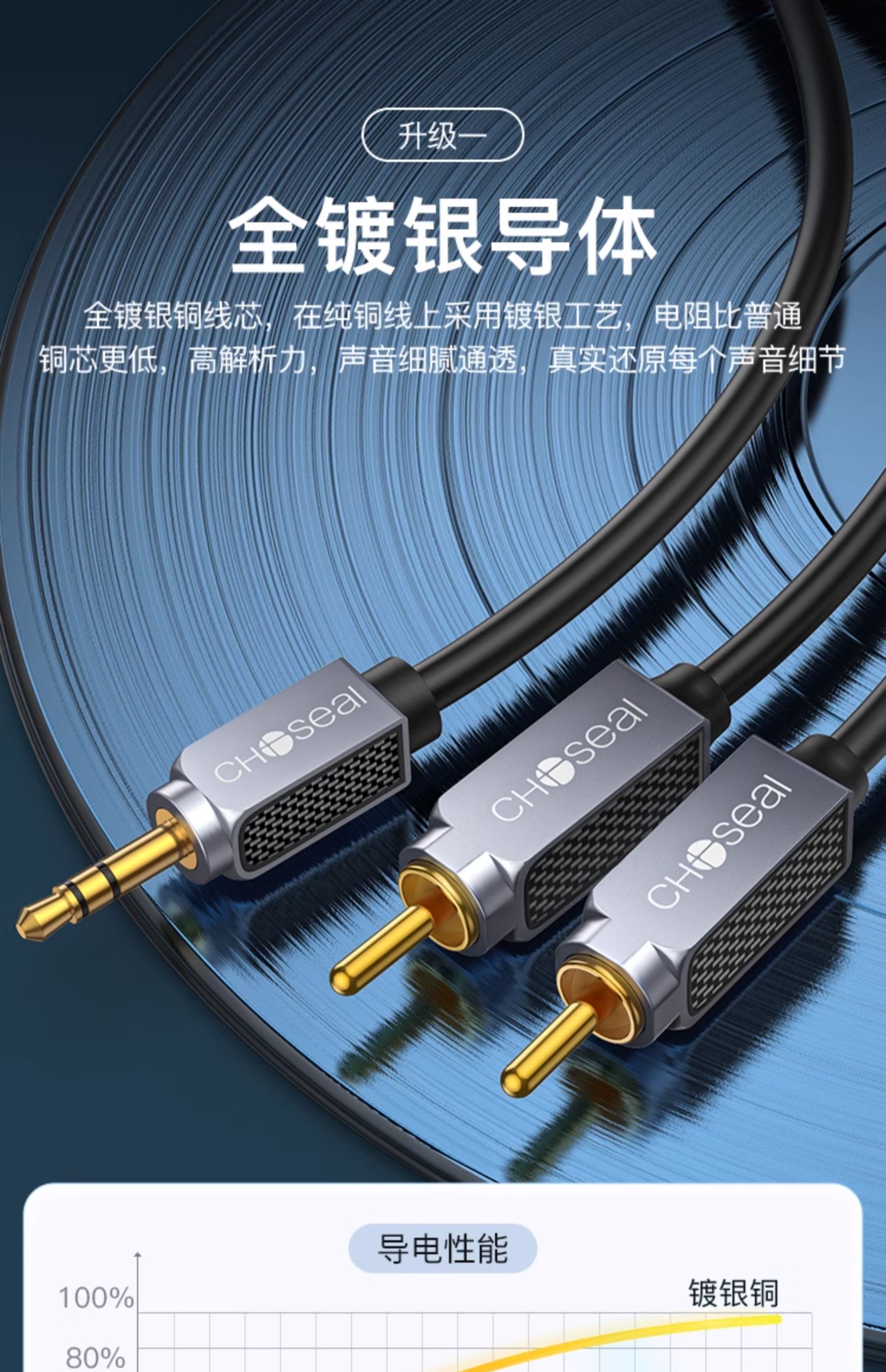 3.5公转双莲花镀银音频线